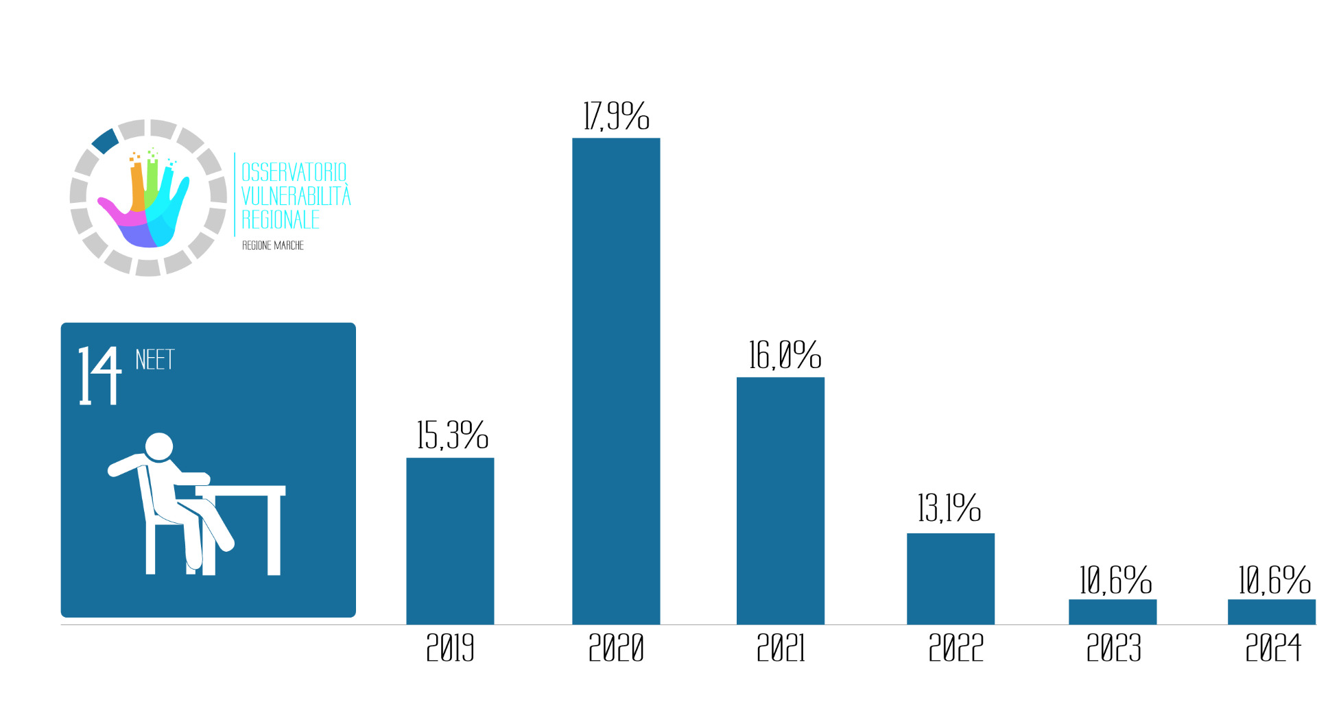 Percentuale di persone di 15-29 anni né occupate né inserite in un percorso di istruzione o formazione sul totale delle persone di 15-29 anni.